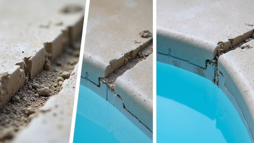 To fix structural pool cracks, you’ll need to follow three critical steps. Initially, detect issues through hydrostatic testing and visual inspection, looking for cracks wider than 1/8″ and signs of rust staining. Next, assess the severity by examining crack patterns, water loss rates, and surrounding soil conditions. At last, implement appropriate repairs using epoxy injection, carbon fiber reinforcement, or shotcrete depending on crack size and location. Professional evaluation guarantees ideal long-term solutions. Additionally, once repairs are made, consider creating structural drawings for pools to ensure proper documentation and future maintenance. These drawings can help identify areas that may require additional attention over time. By maintaining accurate records, pool owners can better manage the longevity and safety of their structures.
