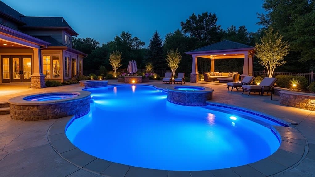 When sunlight fades and evening settles over your backyard, luminescent pool surfaces transform ordinary swimming areas into ethereal, glowing retreats that captivate guests and enhance safety. Modern innovations in underwater lighting and color-changing lights create dramatic visual effects that elevate your pool transformation beyond traditional designs.